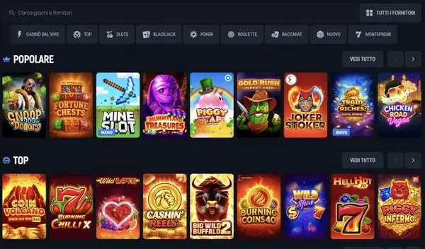 Aggiungiamo regolarmente nuove uscite man mano che i provider le pubblicano, quindi la lobby non resta statica a lungo. Ci concentriamo su un catalogo grande e vario, piuttosto che promettere titoli esclusivi. La modalità demo è disponibile su molti giochi, ma alcuni titoli (soprattutto i tavoli live) possono richiedere gioco con denaro reale. L’RTP non è verificato pubblicamente; alcuni giochi mostrano l’RTP solo nei pannelli informativi interni al gioco.